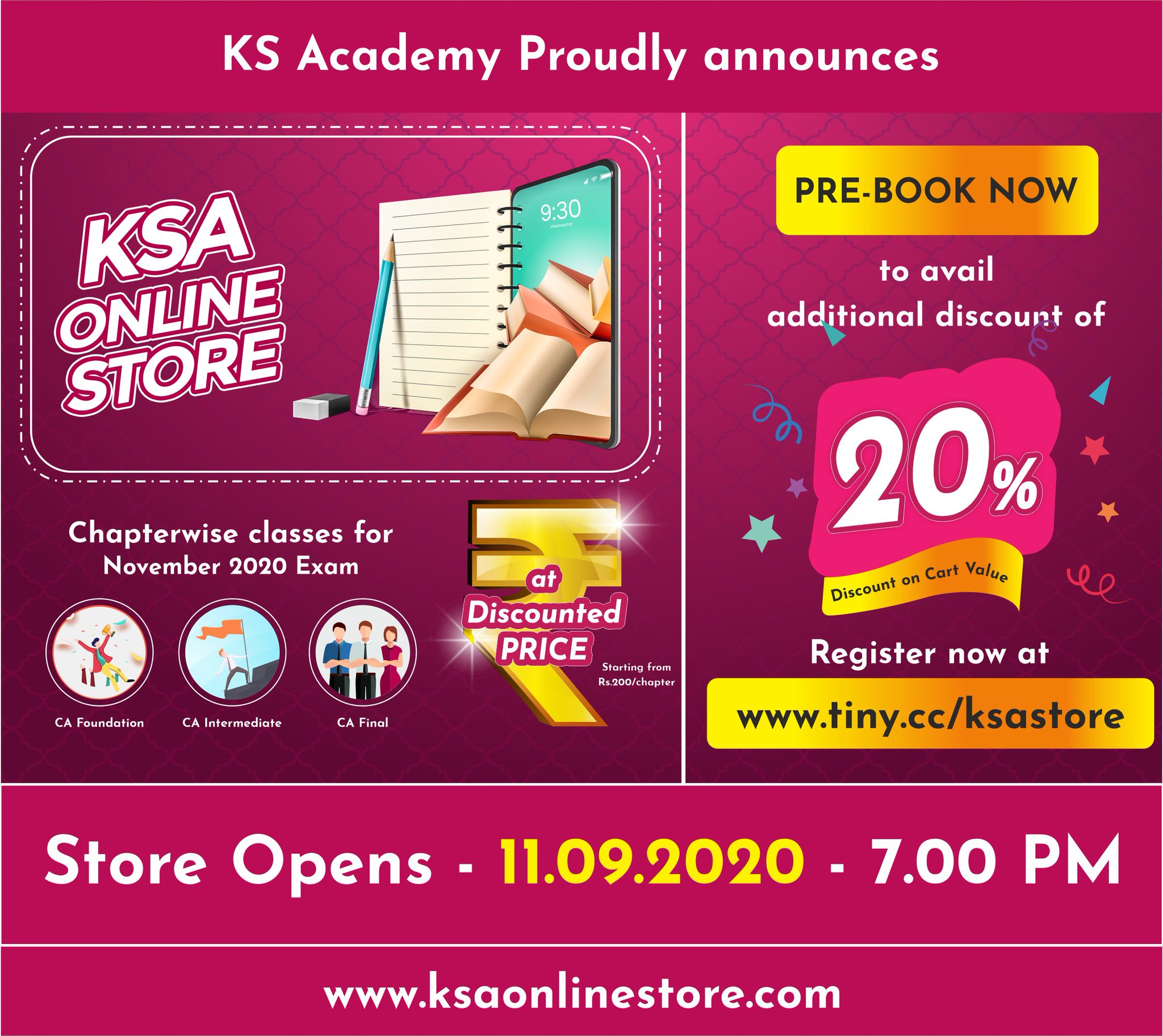 Ks Academy On Twitter Ksa Online Store Pre Book Now At Https T Co Pvxyblyit0 To Avail An Additional Discount Of 20 Store Opens On 11 09 2020 Friday At 7 00 Pm Ksaonlinestore Ksa Ksacademy Cacoaching Https T Co 0ukeedh7wb